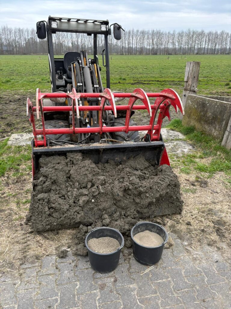 Daarnaast vertelde Hans hoe hij werkt met kruidenrijk grasland. Door verschillende kruiden en grassen te combineren ontstaat een robuuster grasland dat beter bestand is tegen droge periodes en bijdraagt aan een gezonde bodem. Binnen kregen de deelnemers nog een verdiepende presentatie van FarMinB over de toepassing van klei op zand en de effecten op de bodem.